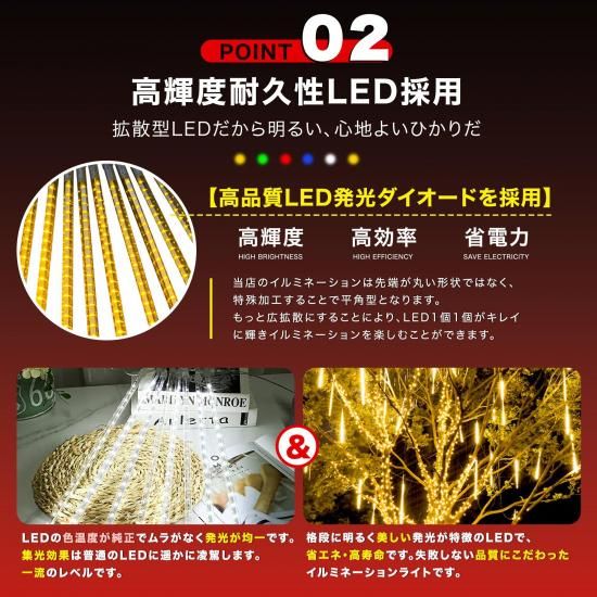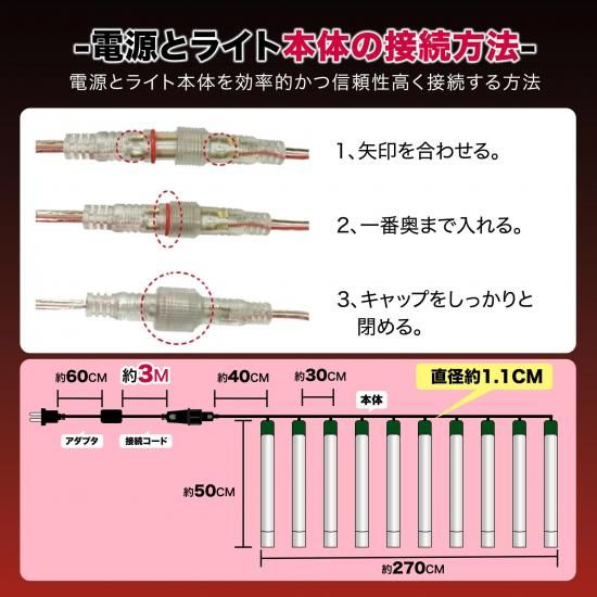 LEDスノーフォールライト 50cm 10本 540球 コード直径1.8mm 防雨型 イルミネーション クリスマス LEDスノードロップライト 流れ星
