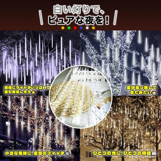 スノーフォールライト イルミネーション LED つららライト 雪 屋外 室内 クリスマスライト ホワイト デコレーション 電飾 IP65 コンセント式 ベランダ 窓 玄関 店舗装飾 LEDスノーフォールライト 50cm 10本 540球 コード直径1.8mm 防雨型