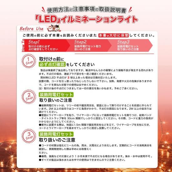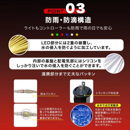【単品】 連結用 線径激太い 防水IP67 イルミネーションライト クリスマスライト ストレート 定番商品 100球 10m 防雨 連結可 コントローラ付 メモリ記憶 8点灯パターン 工事用 保証付
