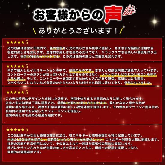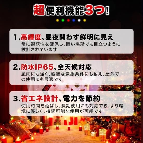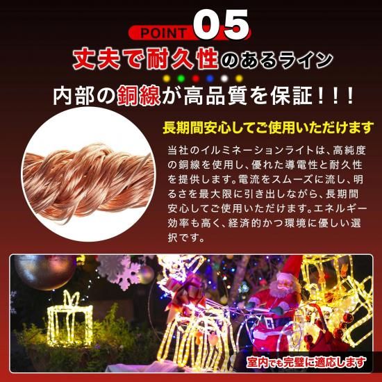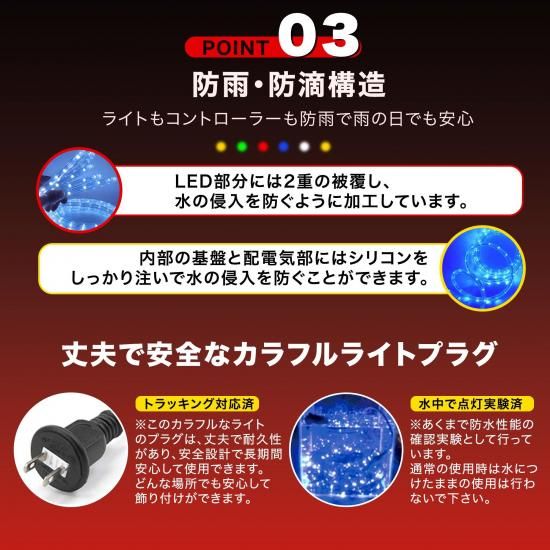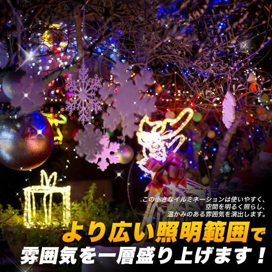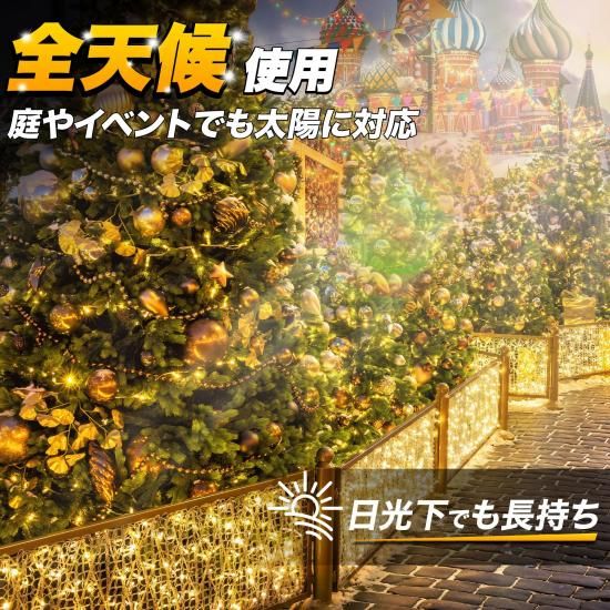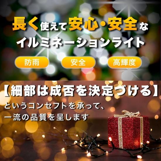 防滴仕様で屋外設置も安心。ツリーや窓辺、フェンス、玄関など飾り方は自由自在。