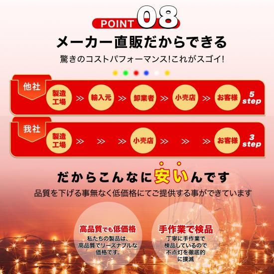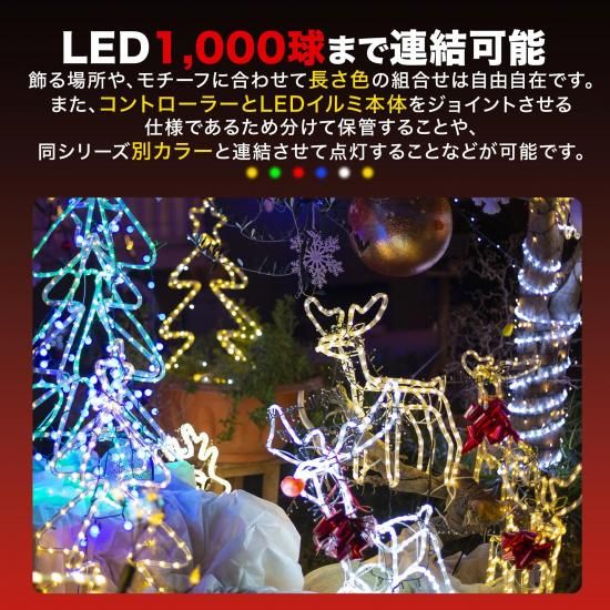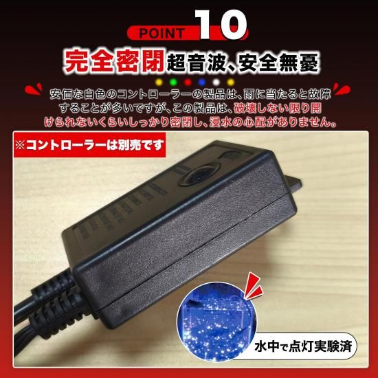 【単品】 連結用 線径激太い 防水IP67 イルミネーションライト クリスマスライト ストレート 定番商品 100球 10m 防雨 連結可 コントローラ付 メモリ記憶 8点灯パターン 工事用 保証付