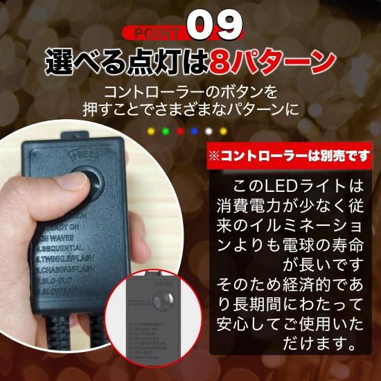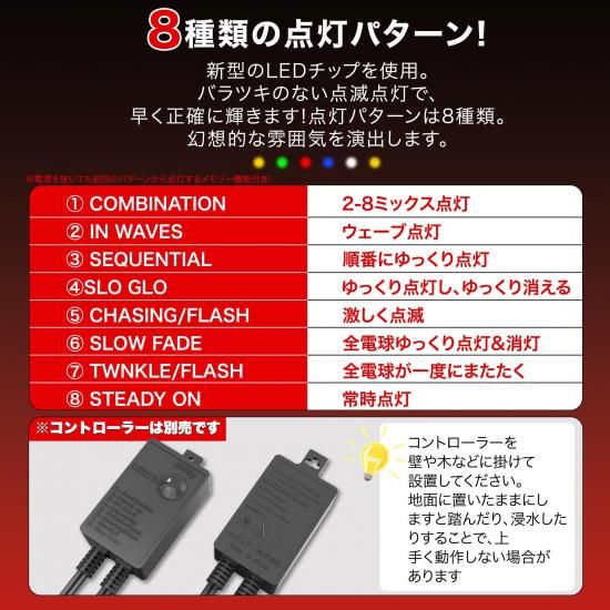 イルミネーションライト クリスマスライト ストレート ライト 100球 10m 防雨 連結可 メモリ記憶 8点灯パターンコントローラ付 定番商品 高輝度 長寿命