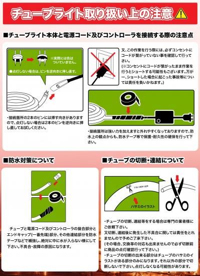 ・連結部分のキャップはしっかりと閉めてください。水の侵入でショートの恐れがあります。