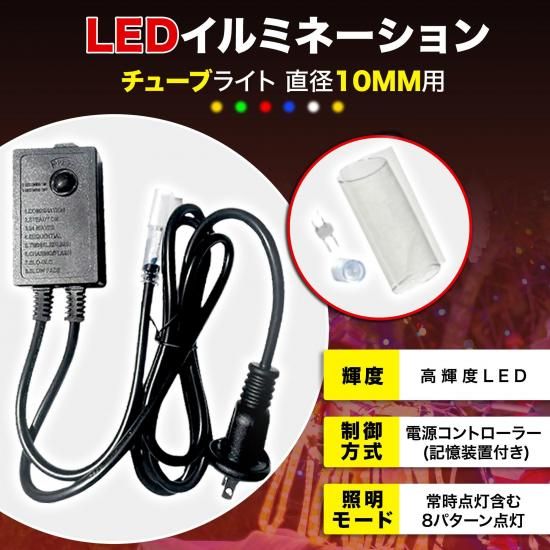 LEDチューブライト 防雨型電源付 ロープライト 2芯タイプ 10m 直径10mm 300球 連結可能 カット可 【ブルー・青】