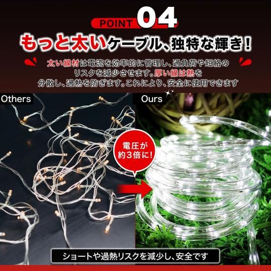 【法人向け 線径激太】 イルミネーションライト クリスマスライト 線径激太い 防水IP67 ストレート 100球 10m 防雨 連結可 コントローラ付 メモリ記憶 8点灯パターン 工事用最適 高輝度