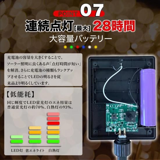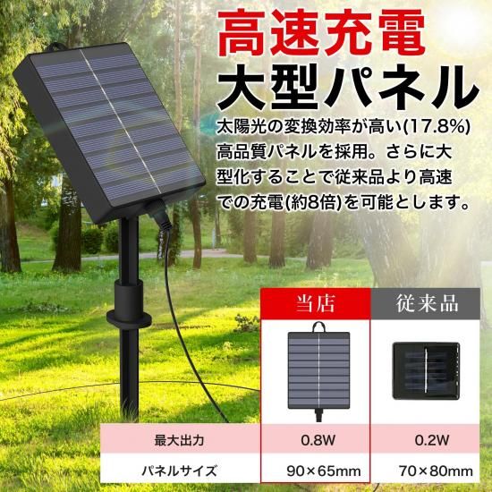 電気代0円/自動点灯/8パターン点灯/防水IP65/大容量バッテリー
