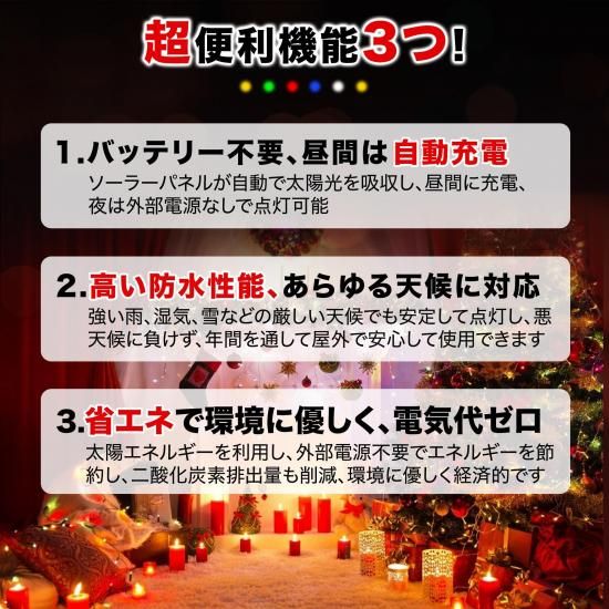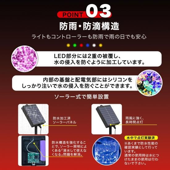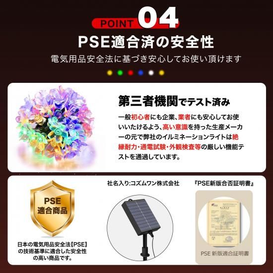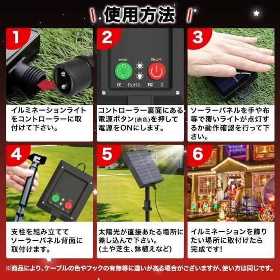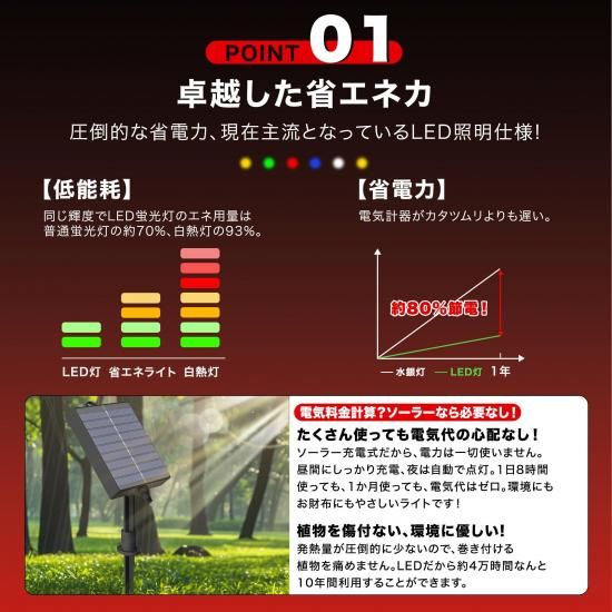 ・ソーラーパネルは南向き・影の少ない場所に設置 ・雪や霜がついたら布で軽く拭き取り充電効率UP ・曇天時は点滅モードで省エネ・長寿命